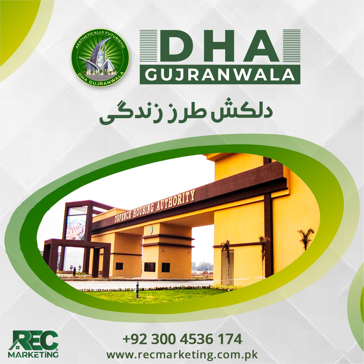 “DHA Gujranwala is Pakistan’s No. 1 Housing Authority that works as a welfare organization for the wards and families of martyrs and war wounded servicemen. DHA Gujranwala is backed by GHQ Pakistan Army and acts as a commercial organization to provide latest urban housing schemes with state of the art amenities to its residents. Located on Main GT Road, Gujranwala, DHA is the biggest land holder and serves the people of Golden Industrial Triangle consisting of Gujranwala, Sialkot, Gujrat and Sheikhupura Districts and surrounding areas.”